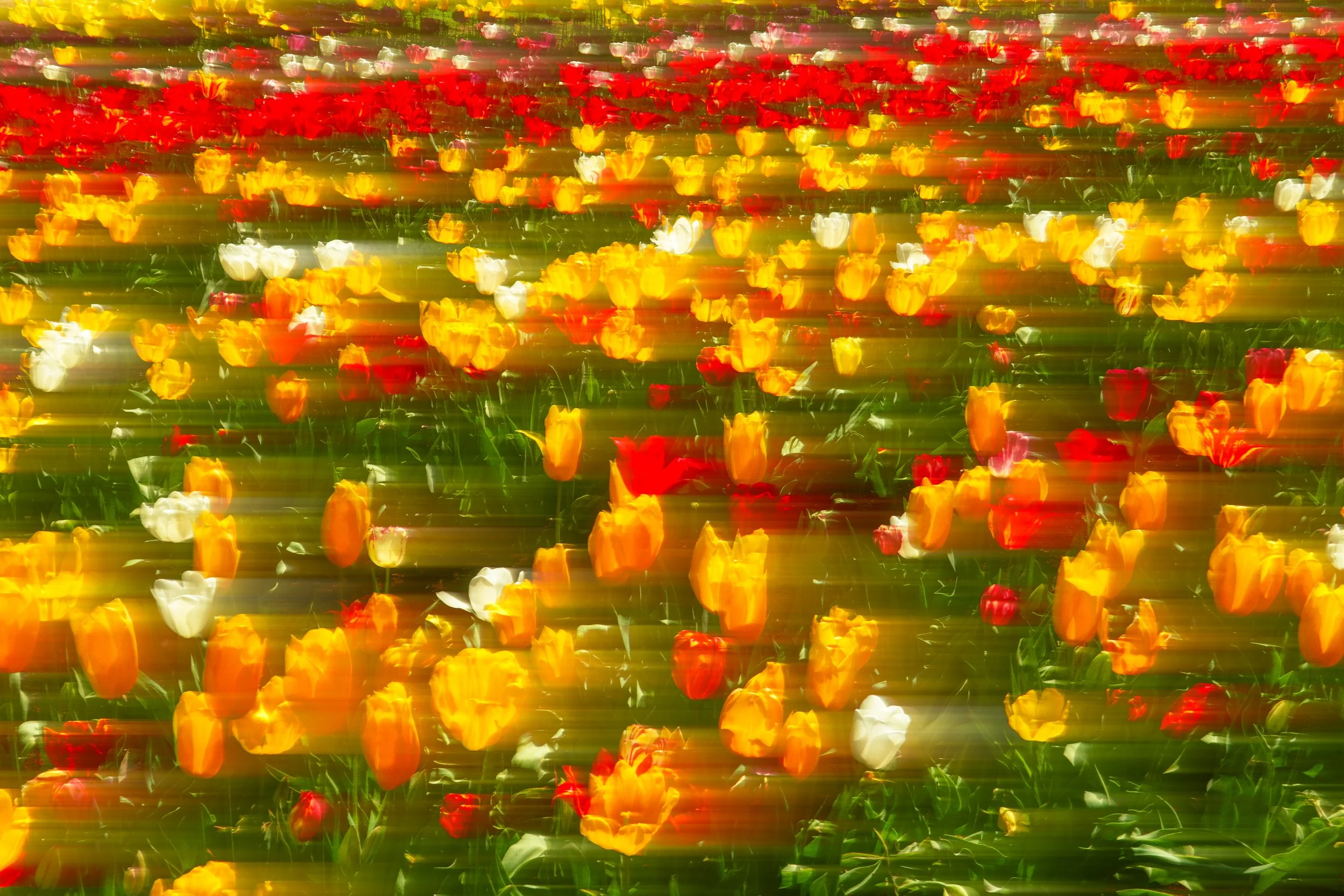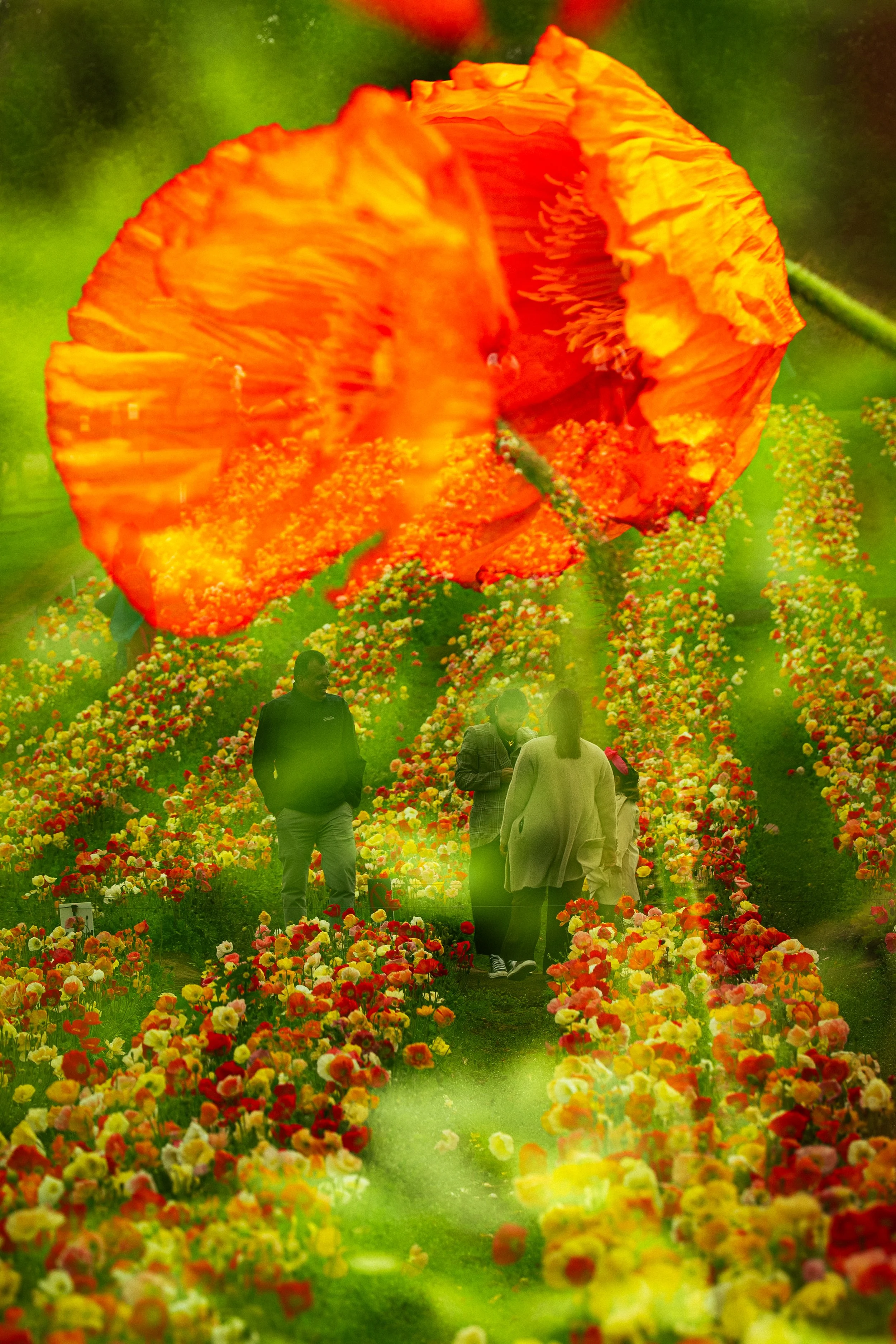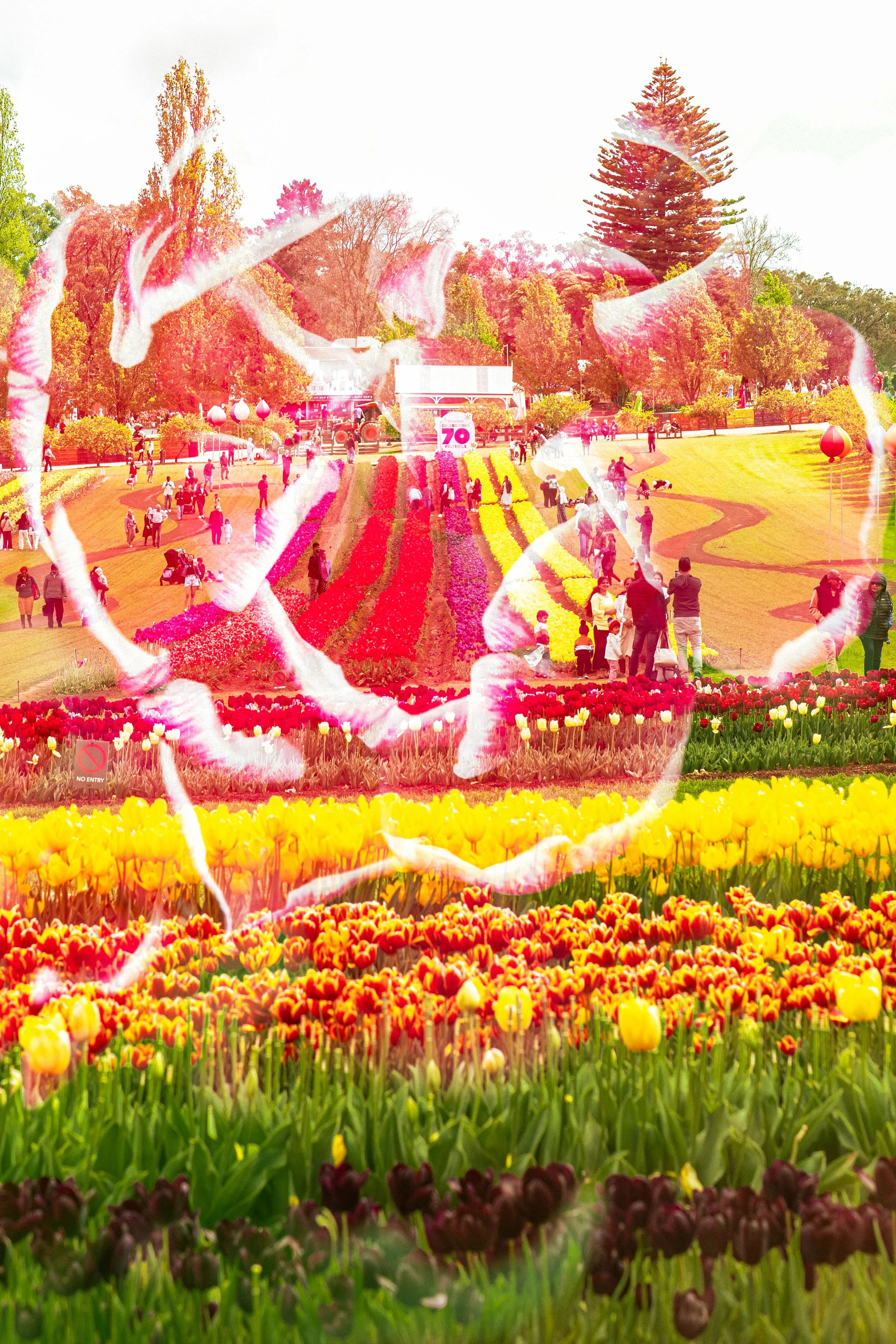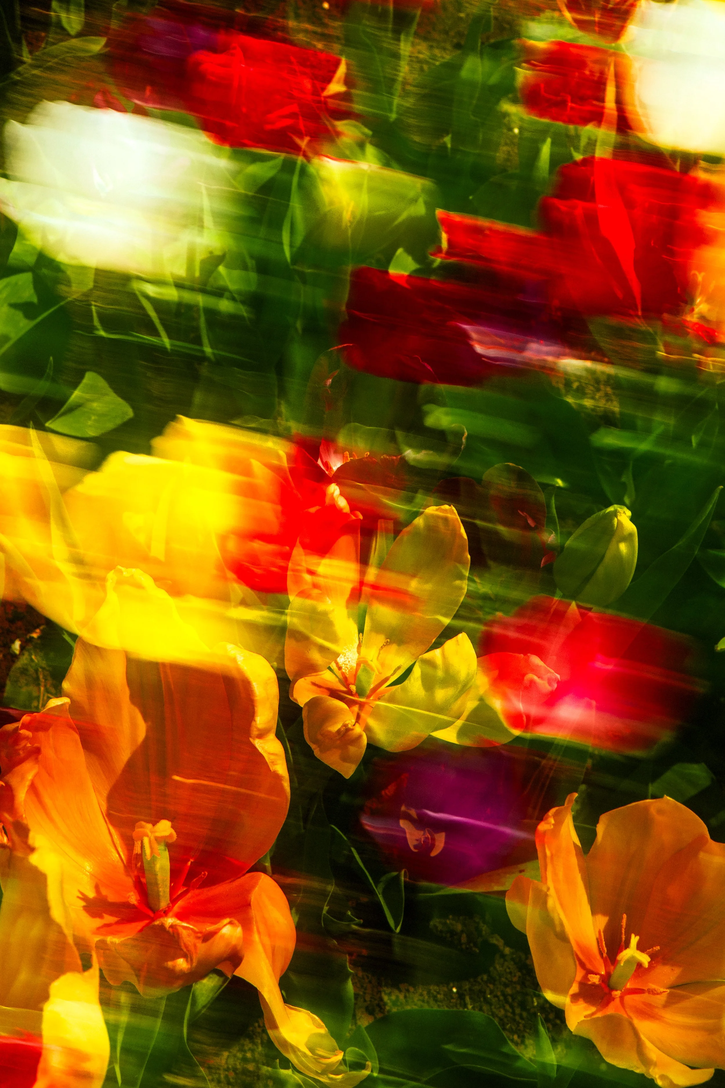 Amidst Colour captures the rhythm of people moving through fields of tulips, immersed in light, motion, and reflection. Through handheld camera movement, slow shutter speeds, and layered exposures, I blurred boundaries between people and petals, turning the festival into a living canvas of colour and memory. The softness and overlap of each frame evoke how we experience beauty, not as still scenes, but as moments that shift and dissolve as we pass through them.